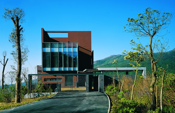 本項目為現代風格別墅,面積從250m2—680m2 不等,同時結合不同類型的別墅特點及地勢、景觀、朝向等因素,力求使住宅戶型方正,分區明確,結構合理。最大可能的有效利用所有基地的特有的景觀——山、海、園,所有重要的房間均要有良好的景觀面和景觀視線。戶型設計都仔細結合山地地形,大部分戶型采用下坡式,充分保護現有的山脊和山谷的自然風貌,在保留群山輪廓的連續性的同時也自然形成了若干下沉式庭院,擴大了采光面和活動區域。每戶結合地形設一個游泳池。