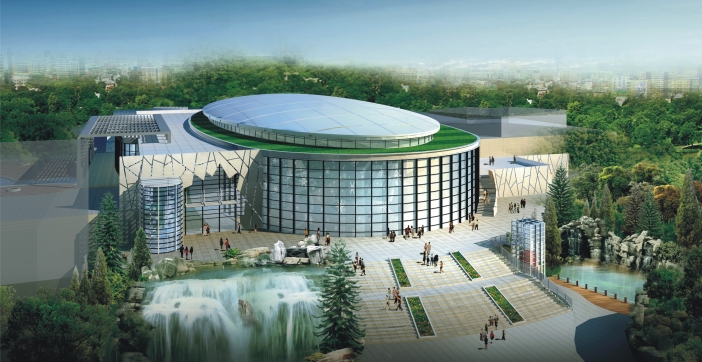 本項目位于深圳世界之窗景區的雕塑園內,周邊有凱撒宮和滑雪場、歐風街等建筑,主體為一大型室內溜冰場局部兩層項目地塊呈南北走向的狹長山坡地形,由北向南逐漸升高,高差15米左右。建筑采用半地下設計,節能效果好,并很好地融入周邊環境。