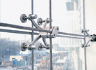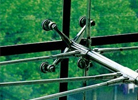 點支式玻璃幕墻由裝飾面玻璃,駁接組件支承結構組成。 按外立面裝飾效果分為平頭點支式玻璃幕墻和凸頭點支式玻璃幕墻。 按支承結構分為玻璃肋點支式玻璃幕墻,鋼結構點支式玻璃幕墻,鋼拉桿點支式玻璃幕墻和鋼拉索點支式玻璃幕墻。
