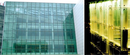 ●結構特點——玻璃肋與玻璃面板之間通過結構膠連接或通過不銹鋼爪件點式駁接,玻璃